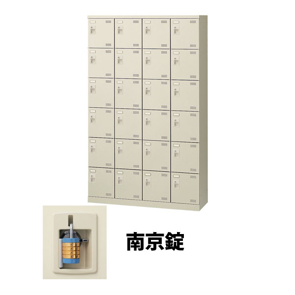 SLB-424-N2 生興 24人用SLBシューズボックス 南京錠用扉付 4列6段 網棚付 ニューグレー