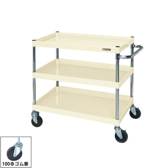 CSP-7573YI サカエ CSパールワゴン中量3段 W750 H740 直進金具付 ゴム車 アイボリー