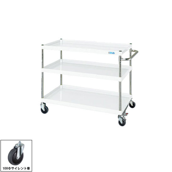 CSP-1283FSSEW サカエ CSパールワゴン中量3段 W1200 H880 フロアストッパー付 サイレント車 ホワイト