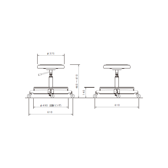 | サイズ | 幅610×奥行610×高さ460~610mm (約 幅61cm/奥行61cm/高さ46cm) |