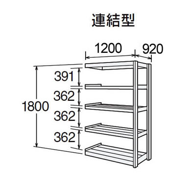 6N66BS-Z269は、天地6段・1段あたり耐荷重300kgの中量棚です。高さ1800×幅1800×奥行470mmの連結型です。