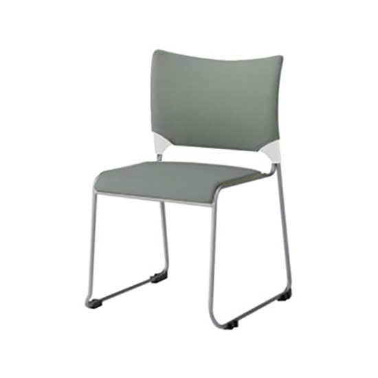 81R2FZ-FFW9は、クローズ脚・シルバーフレームタイプのミーティングチェア レーテ(RETE)です。背はホワイトシェル×背カバー付き、張地は再生素材を用いたグレー色クロスです。
