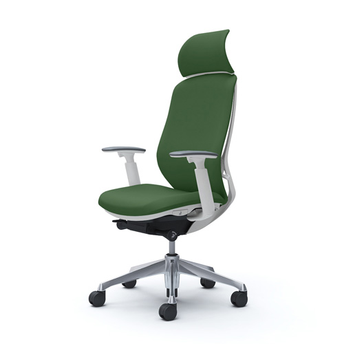 C68CBW-FSG5 オカムラ シルフィー エクストラハイバック 背クッション ダークグリーン 可動肘 ホワイトボディ アルミ脚