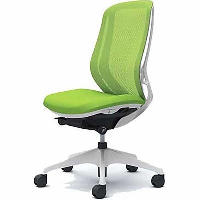 C637BW-FSG5は、オカムラのオフィスチェアで一番売れ筋のオカムラシルフィーで、ボディカラーはホワイトの肘なし。背面ハイバックのクッション張地。カラーはダークグリーン。