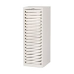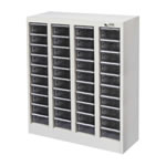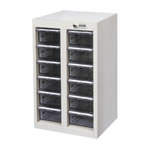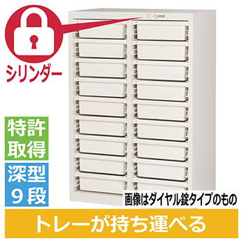 全てのトレーを一括施錠できる、オールロックタイプのキャビネット。