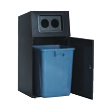 屋外用のスチール製屑入、かん・びん用。容量は約67L、市販の70L用ポリ袋に対応します。カラーはアーバングレー。