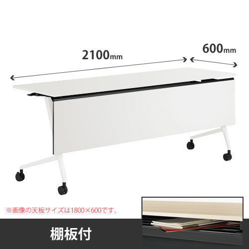 天板下に棚板が付いたタイプもラインナップ。書類やファイル等の収納に便利です。