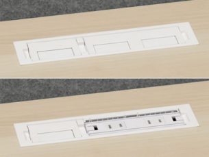 天板に設けられている配線口には、別売のマルチコンセントユニット2口タイプ インセット式の設置が可能です。