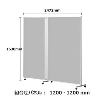 | その他詳細 | 2連タイプ(W900+W1200) カラー:アッシュ パネル:30mm厚 張地:布(ポリエステル100%) フレーム:アルミ押出成型 40φストッパー付双輪キャスター |