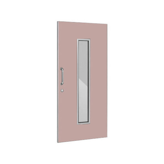 パーテーションLPXの幅900mm×高さ1900mm、カラーはサーモンの窓付き引戸パネル。シンプルで簡単施工。よく使うサイズに絞ったコストパフォーマンスの高いパーテーションです。