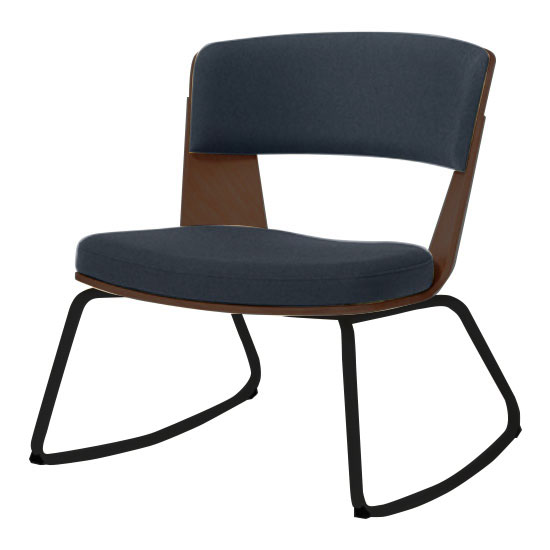 L425BN-FXW4は、ライブス(Lives)シリーズのブラックロッキング脚、ダーク突板シェルのラウンジチェアです。張地カラーはインディゴ。