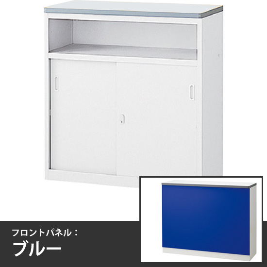 NSH-09UWW-BU 生興 ハイカウンター中棚付引戸タイプ 幅900mm 本体/天板:ホワイト フロントパネル:ブルー