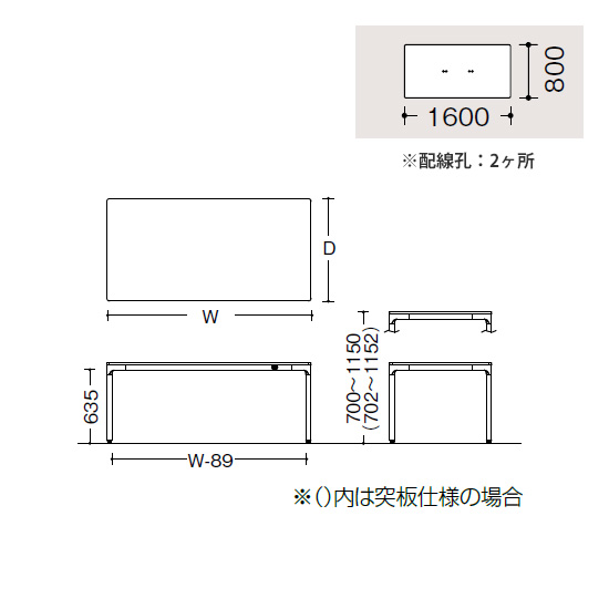 個人デスクとして使う場合は、幕板オプションも取り付きます(※別売です)。