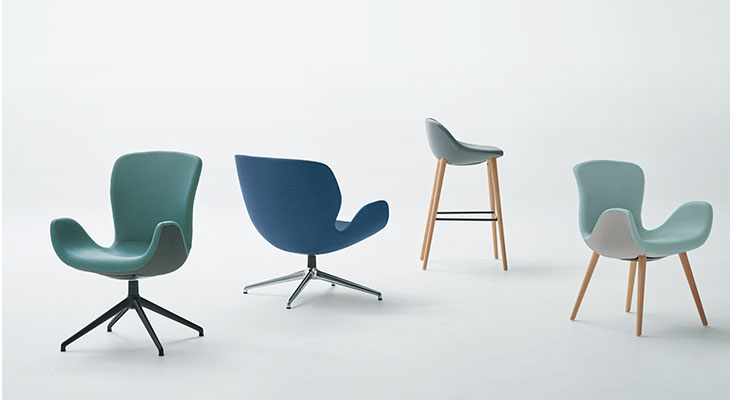 滑らかで、流れるようなデザインのフロックスチェアを取り入れることで、ワークスペースにも柔らかさや動きが生まれます。美しい曲線はワーカー同士に繋がりを築き、落ち着きやリラックスをもたらします。