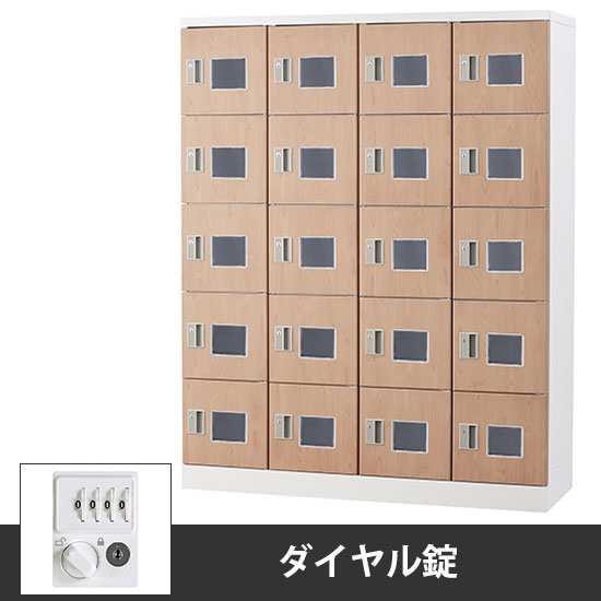 GLK-D20W-NT 豊國工業 多人数用ロッカー 20人用(4列5段) 窓付き ダイヤル錠 ナチュラル