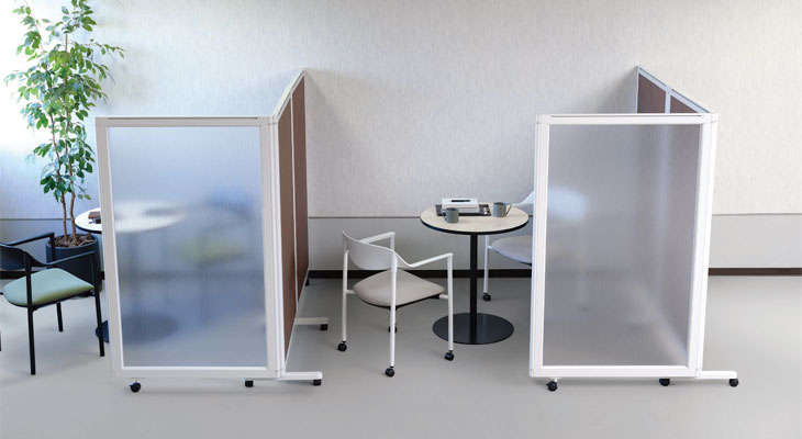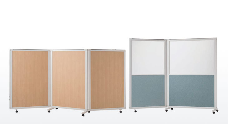 単体パネルの安定脚を外し、ブラケット付キャスター(EP-SK)を取り付けることにより、増連パネルに組替えが可能。用途に合わせてフレキシブルに対応します。