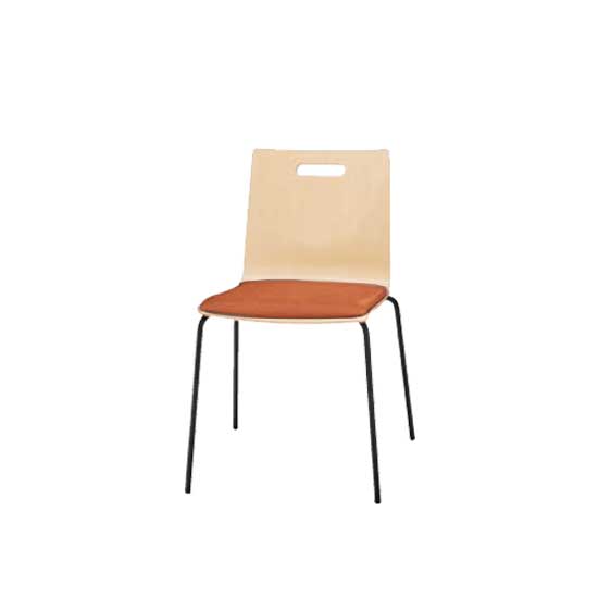 No.8670NS-772-28は、座が木製のシンプルな4本脚リフレッシュチェアーです。背座カラーはナチュラル、パッドはダークオレンジ、脚はハイテンションスチールパイプのブラック塗装。