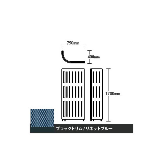 MN23BA-FUB0は、リニューアルした吸音パネル「マッフル」シリーズの曲線パネル、Jパネル本体です。高さ1700mm、ブラックトリム×リネットブルー貼り。アジャスター脚付きです。