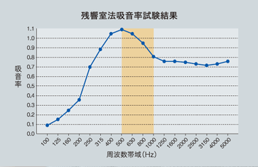 人の話し声に多い周波数帯域(500~1000Hz)の吸音率が0.8以上となっています。