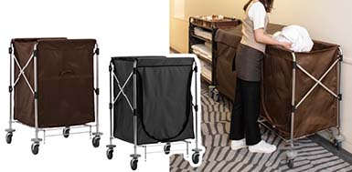 別注にて、ブラック・ブラウン等の落ち着いたカラーを採用したリネン回収ワゴン仕様に対応します。