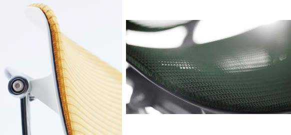 背のメッシュは透過性が高く、しなやかかつ美麗に。座面のメッシュは手触りの良さを重視して、座り心地と耐久性を備えて。
