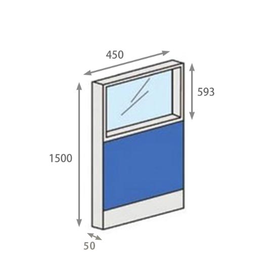LPX-PG1504-BUは、幅450×高さ1500mm、上部ガラス・下部布貼り(ブルー)のパネルです。シンプルで簡単施工、コストパフォーマンスの高いパーテーションです。