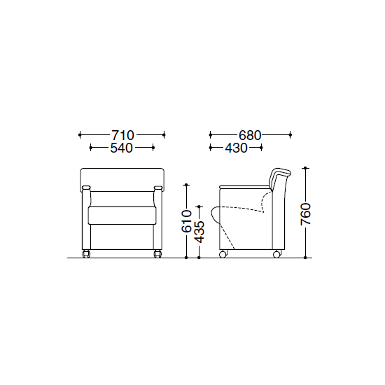 応接椅子の寸法図です。
