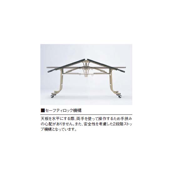 天板を水平にする際、両手を使って操作するため手ばさみの心配がありません。また、安全性を考慮した2段階ストップ機構となっています。