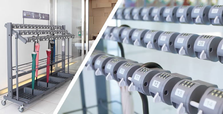 簡単操作のカードロック式、カード発行が出来るオプションもある傘立てです。