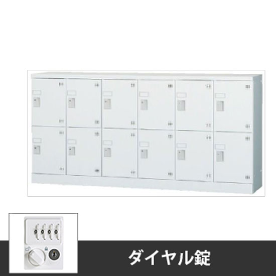 GLK-D12YS 豊國工業 12人用 多人数用ロッカー 低型 ダイヤル錠扉付 6列2段 スチール棚付ホワイトグレー