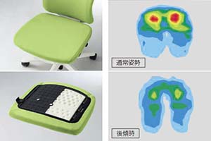 座骨周辺や大腿部を適度に減圧することで、通常姿勢では座をしっかりと支え、後傾時には体重移動による座の前すべりを防止。快適で安定した姿勢を保ちます。
