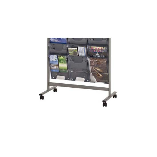 3列8段のスタンダードパンフレットスタンドです。限られたサイズにパンフレットをたっぷり収納します。底上げパーツでDMサイズにも対応します。