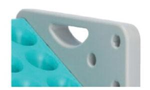 二つ(サイズ・色違い)で購入しました。施設の玄関先に置いてます。持ち手がついているので移動も楽にできますし、色も明るいので評判が良いです。大きいのを職員用、小さいのをお客様用にし、両側の上部にテプラを貼るスペースがあったので「お客様用」と貼り、わかりやすく使えております。