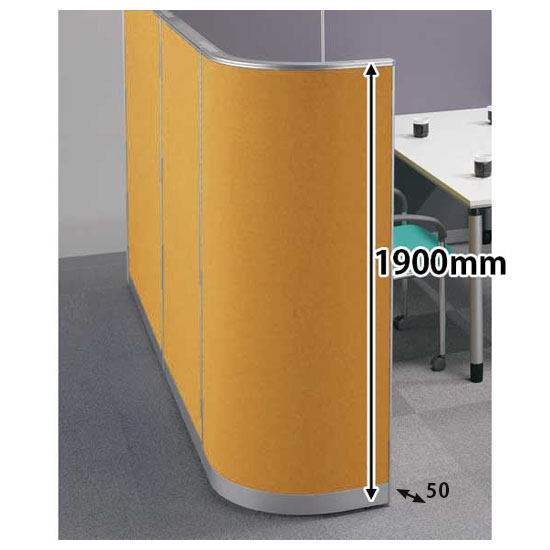 LPX-19RP-YEは、高さ1900mm、コーナー用の曲線パネルです。イエローの布貼り。シンプルで簡単施工、コストパフォーマンスの高いパーテーションです。