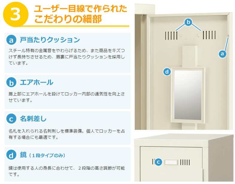 名札を入れられる名刺刺しを標準装備。個人でロッカーを占有する場合にも最適です。 - 鏡(1段タイプのみ)