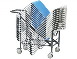 専用台車を使用することで、最大25脚までスタッキング可能です。(25脚積載時:高さ1530mm)