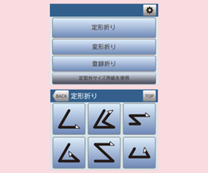 | 折り形種類 | 2つ折り、内3つ折り、外3つ折り、4つ折り、片袖折り、観音折り、2回通しによるクロス折り ※1 | ||