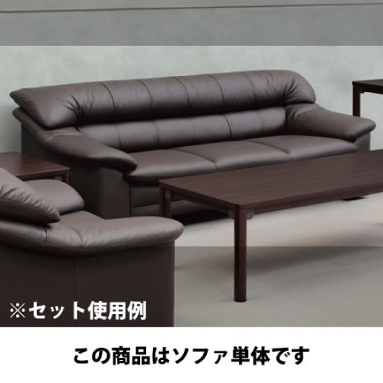 本革を贅沢に使った上質な座り心地のオフィス応接家具。3人掛けソファー、レザーカラーはブラウン。