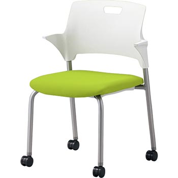 CM353-MYC-PST-PPI サンケイ ミーティングチェア キャスター付 背合板ナチュラル 座布パウダーピンク