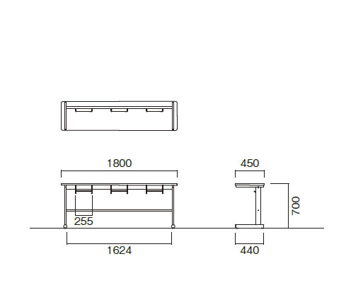 | サイズ | 幅1800×奥行450×高さ700mm (約 幅180cm/奥行45cm/高さ70cm) |
