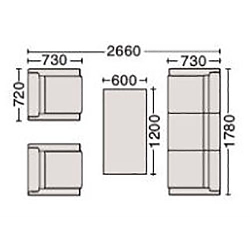 | サイズ | 幅1780×奥行730×高さ690(座面高380)mm (約 幅178cm/奥行73cm/高さ69cm) |