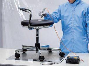 導電レザーや導電キャスターを使用しているため作業者のアース経路を確保することができ、発生した静電気の人体への帯電がきわめて微量です。