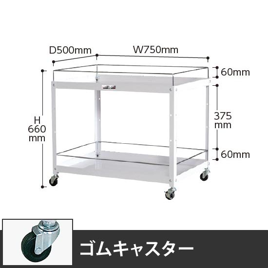 WCWF-2-P 山金工業 コンビニワゴン 2段コボレ止め付き 幅750 ゴム車