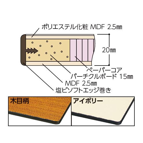 パーチクルボード芯とペーパーコア芯により非常に軽く移動も苦になりません。表面硬度は3Hです。