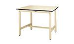 パーチクルボードを芯材として表面は塩ビシート貼りです。中量作業に適しています。バイス取付にも対応できます。