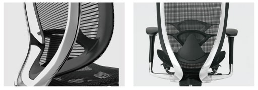 特に背面がメッシュタイプの張地の場合、フレームから離れるほど(つまり背骨あたり、椅子の中心部分)メッシュの張りが弱くなり、腰が浮きがちになります。