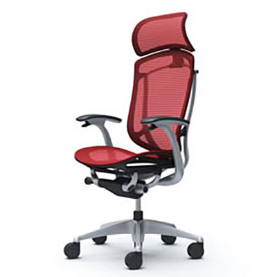 CC45GR-FPG9 オカムラ コンテッサ セコンダ エクストラハイバック 座メッシュ レッド 固定肘 ブラックボディ シルバーフレーム