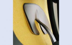 ランバーサポートは腰(腰椎)をサポートし、体に合った位置に調節することで腰への負担を軽くします。ランバーサポートのバーの両側を両手でつかみ、上下させることで、体に合った高さに調節します。両端のつまみを回転させることで、左右非対称の腰にサポート力を調節出来ます。