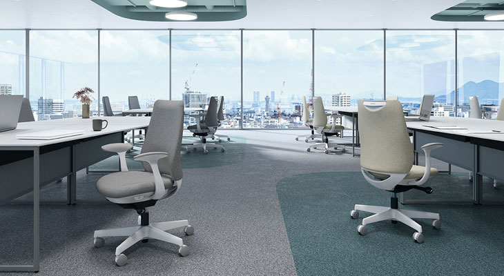 座った瞬間、ソフトなクッションが身体をやさしく受けとめます。さらに、背もたれの内部に採用した樹脂シェルのグリッドが、背中の動きにあわせて変形。長時間のハードワークでも快適です。