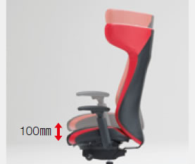 座面の右下にあるレバーを持ち上げることで、座面の高さ調節が可能です。(ストローク:100㎜)